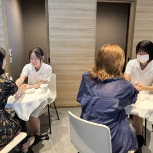 8月3日(日)、新大村駅前にある「上田皮ふ科PAAK」にて【第2回 Beauty まなびのマルシェ】が「美」×「学び」×「大村」をテーマに開催され、昨年度に続き、本校エステティック科の生徒が参加しました。