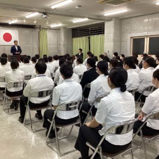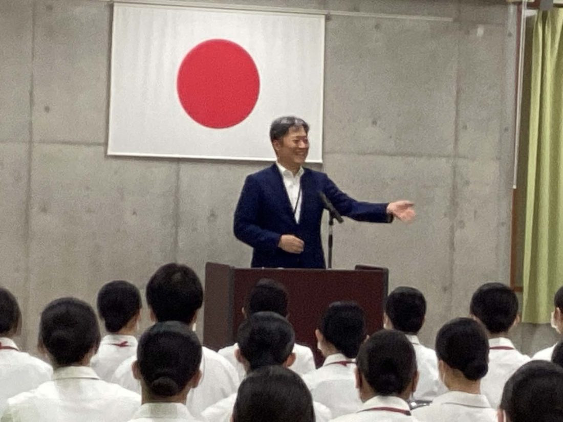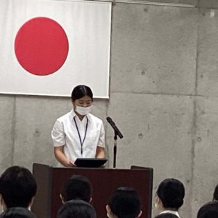 終業式では、校長先生より訓話があり、前期を通して学習や臨地実習に全力で取り組んできた自分自身をしっかりと認め、ねぎらう時間を持つことの大切さが語られました。これは多忙な看護師という仕事を目指す学生たちにとって、心身の健康を保つ上で最も重要なメッセージの一つです。「自分に親切にできる人」こそ、心に余裕を持って他人に親切に、つまり「奉仕の心」を表に出すことができるからです。