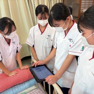 演習後には振り返りの時間を設け、それぞれが改善点を確認し、次の目標を明確に立てることができました。看護を学び始めて半年が経ち、実習着姿もすっかり板についてきた1年生たち。確かな成長を見せる生徒たちの、これからの活躍が楽しみです。