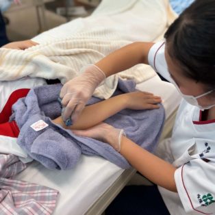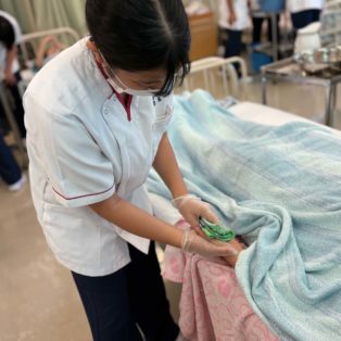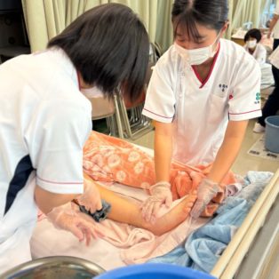 必要物品の準備や湯温の調整など、初めての手技に戸惑う場面もありましたが、仲間と協力し合いながら、患者さまの身体を清潔に保つための技術を少しずつ身につけていきました。