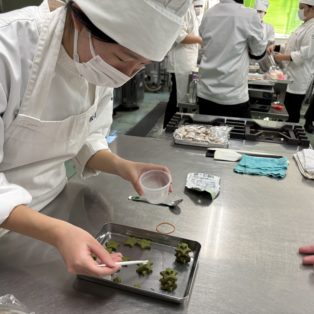 パティシエ科3年の生徒たちが、この季節ならではのクリスマスケーキ作りに挑戦しました。