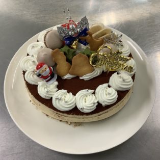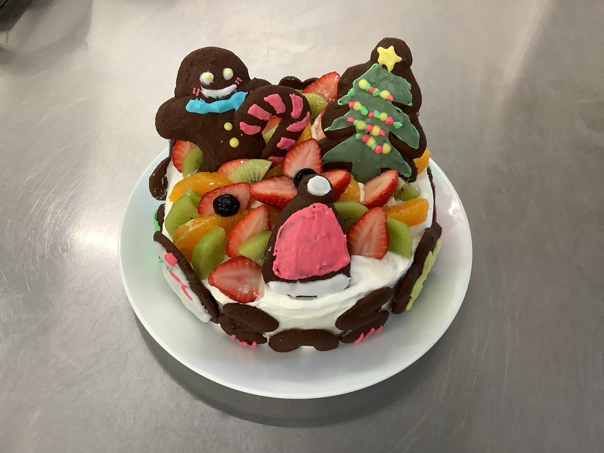これまで学んできた製菓技術や知識を存分に生かしたクリスマスらしい華やかなケーキが完成しました。