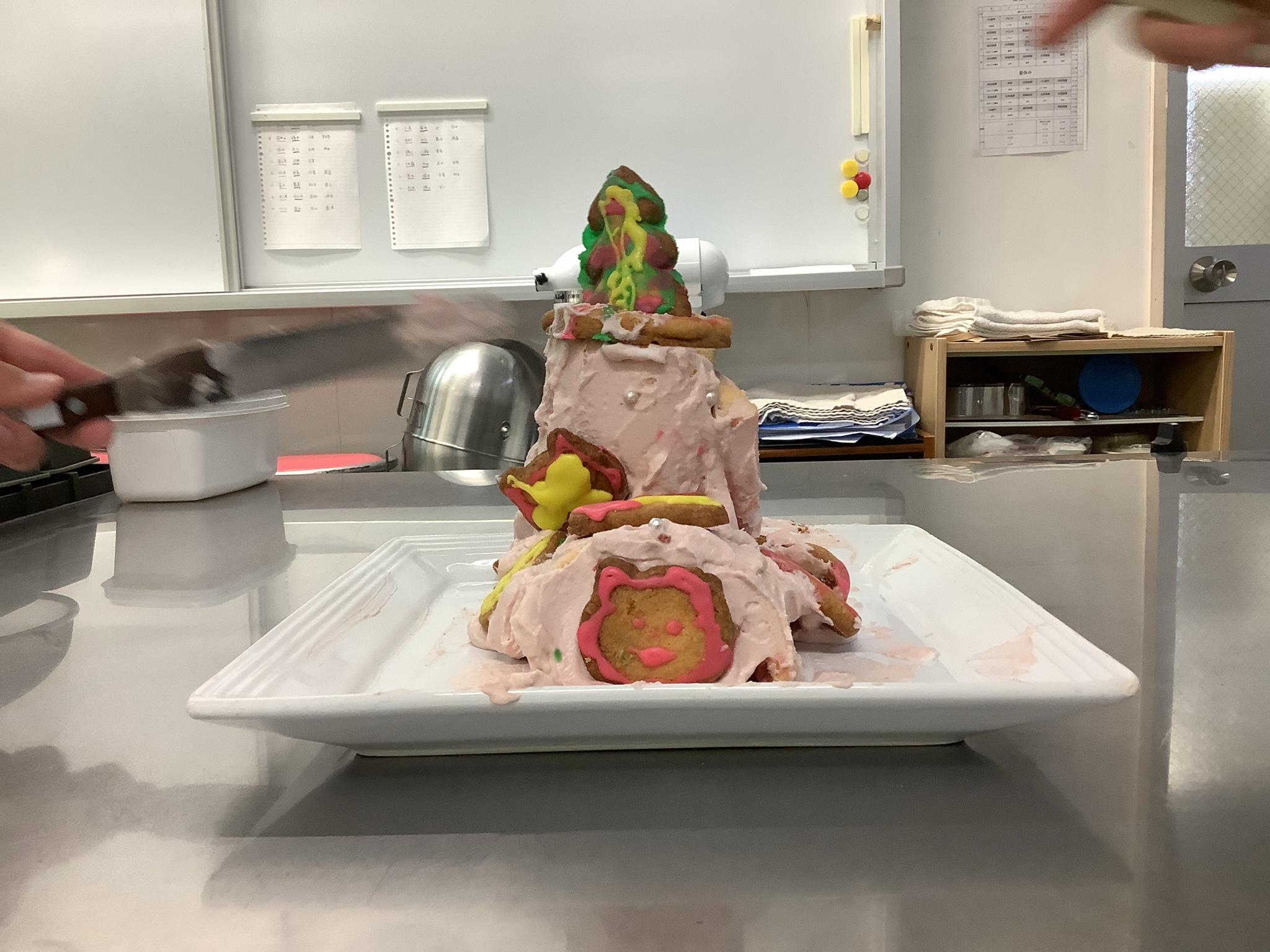 レシピ考案からデザイン、そしてデコレーションに至るまで、すべて自分たちでアイデアを出し合い、工夫を凝らして完成させたオリジナルケーキです。