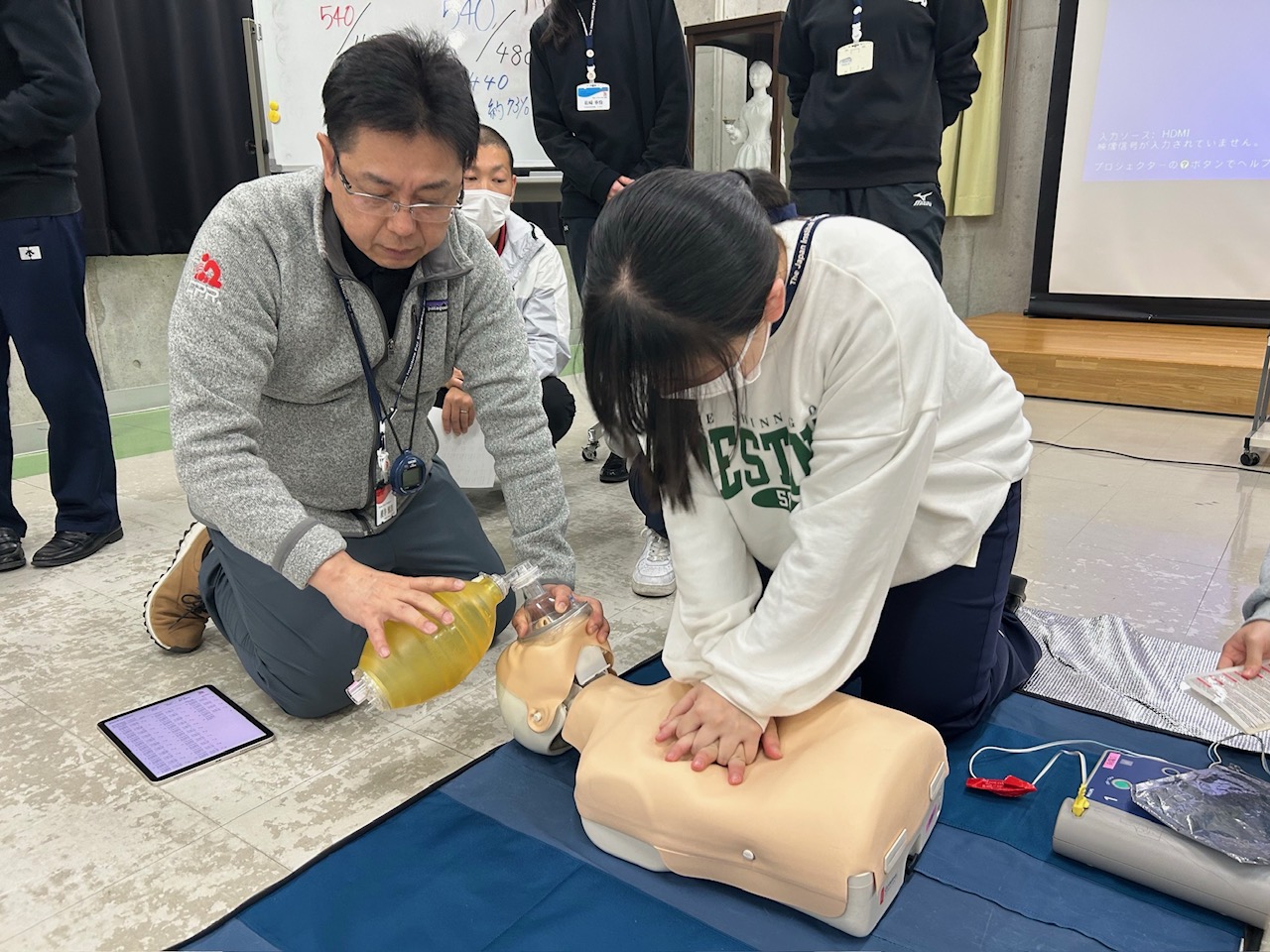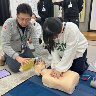 この試験に向けて、事前の講義では心肺蘇生法やAEDの使用方法について理解を深め、実技研修では実習用人形を用いて実際の救命現場を想定した反復練習を行ってきました。