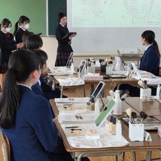 2月9日(月)、向陽高校エステティック科が長崎工業高校3年の女子生徒の皆さんに、「社会人向けメイクアップ講座」を行いました。