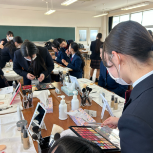 2月9日(月)、向陽高校エステティック科が長崎工業高校3年の女子生徒の皆さんに、「社会人向けメイクアップ講座」を行いました。