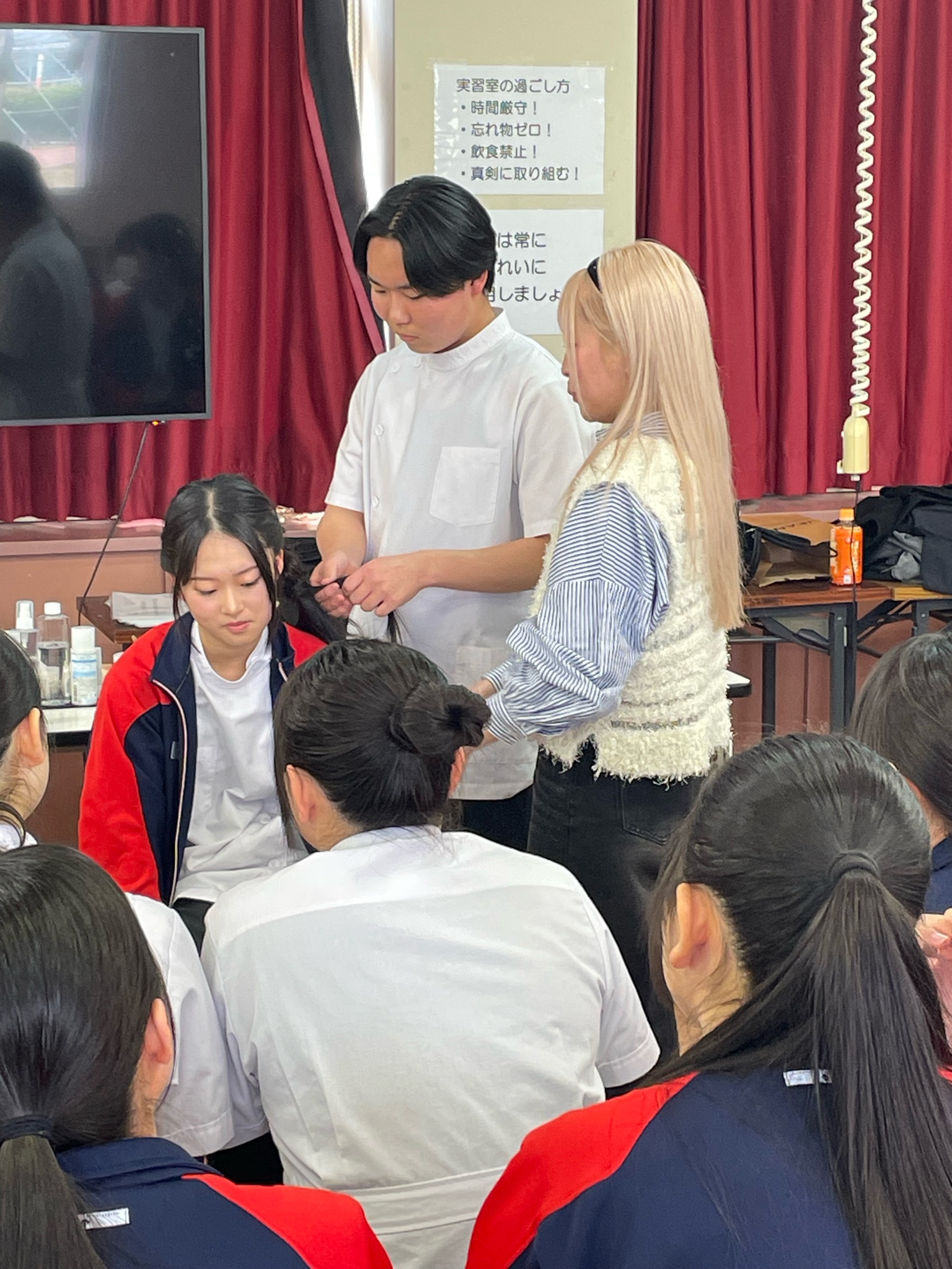 2026.03.20【美容科】美容科1・2年生が憧れの先輩から学ぶ!サロンワークを実施