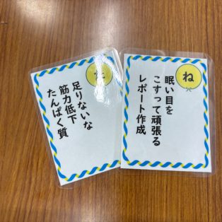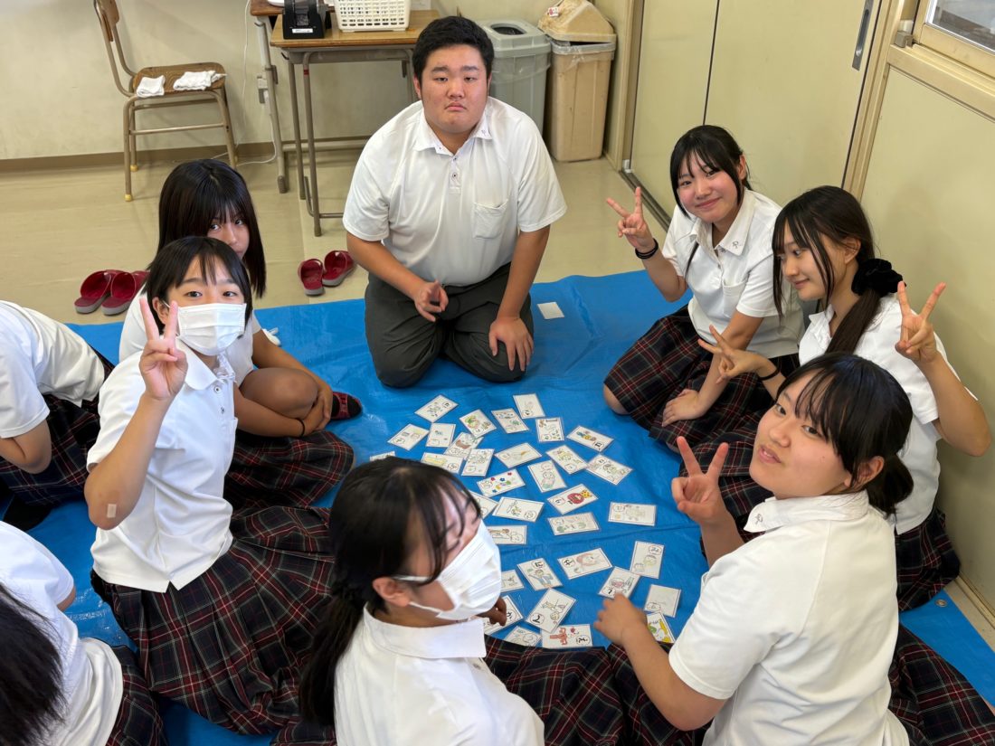この「看護かるた」は、本校の卒業生が制作したもので、看護に関する知識や心得が楽しく学べる内容になっています。今回は、夏休みを前に、学びを振り返るとともに、クラスの親睦を深めることを目的に実施しました。