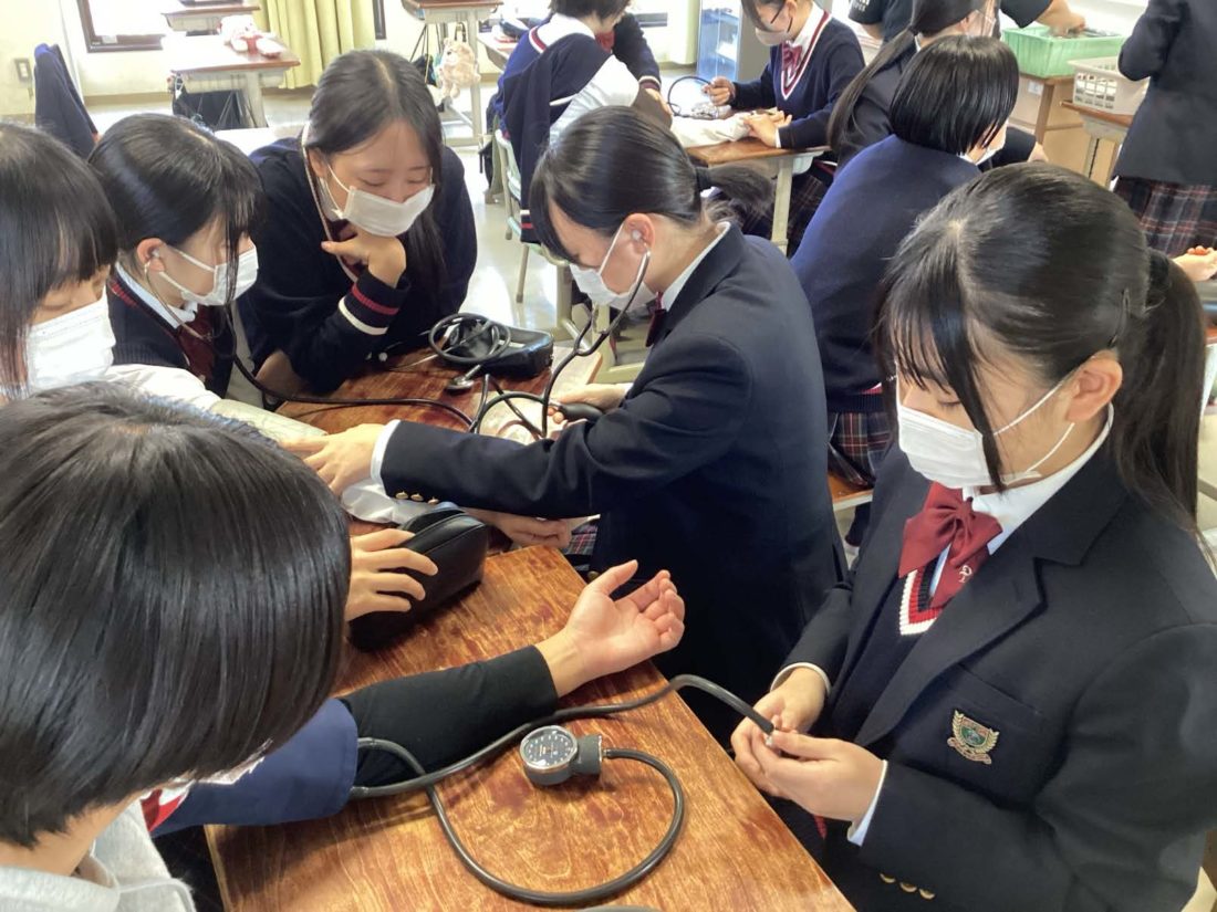 12月に初めての臨地実習を迎えた看護科1年生たち。看護技術の習得にもいっそう熱が入っています。