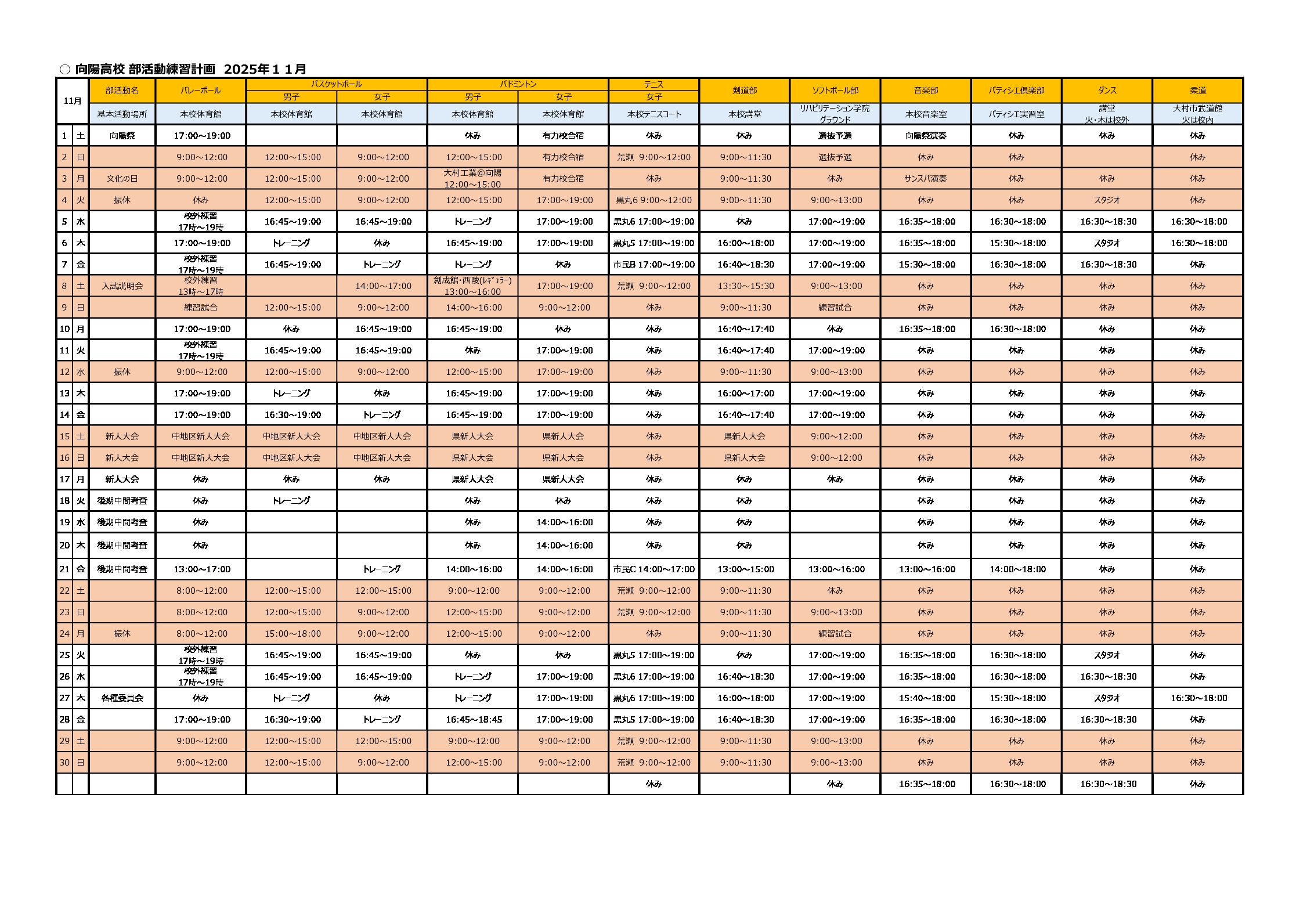 月間スケジュール