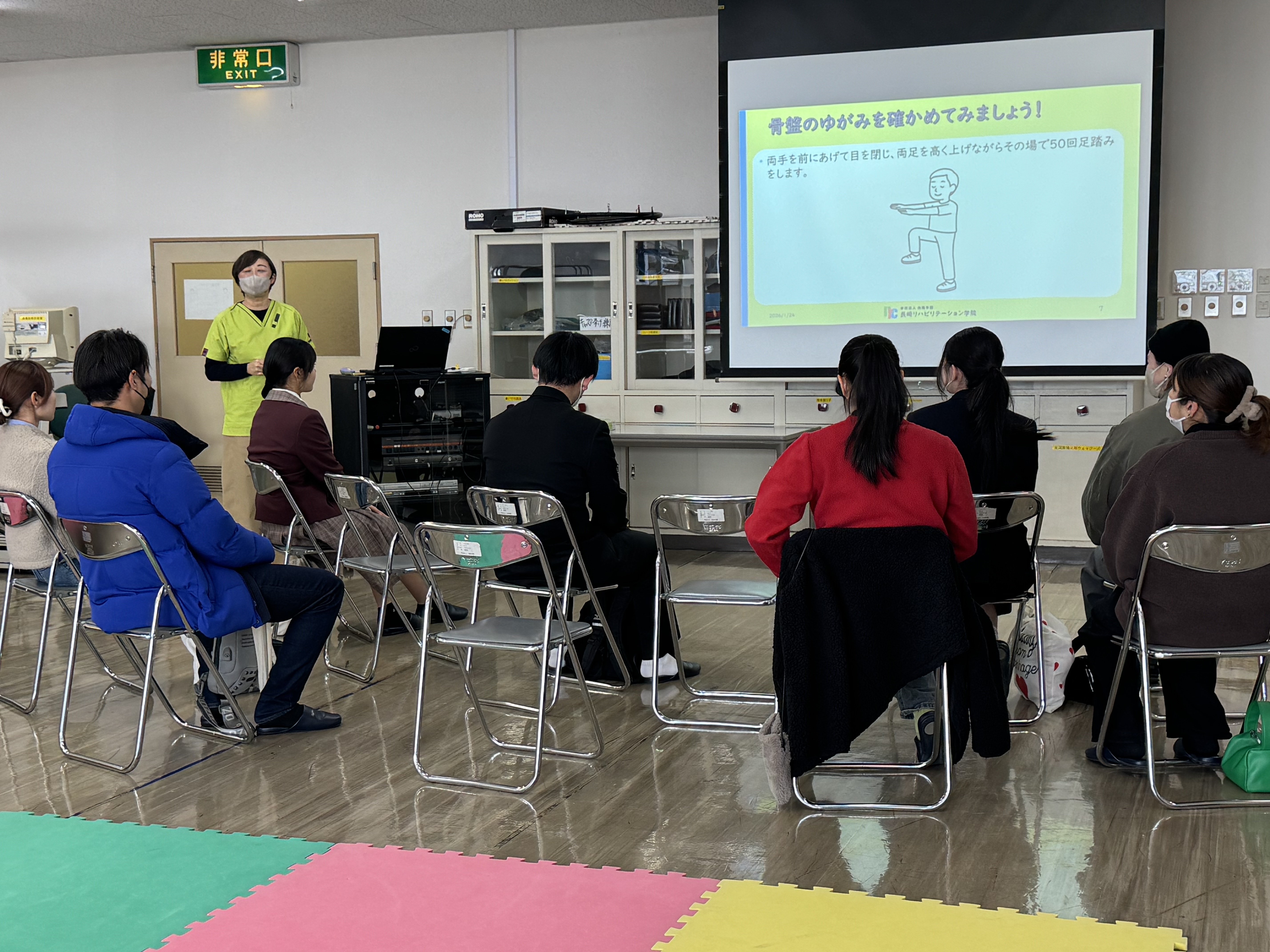 その後は、理学療法学科・作業療法学科・言語療法学科に分かれて学科体験を実施。