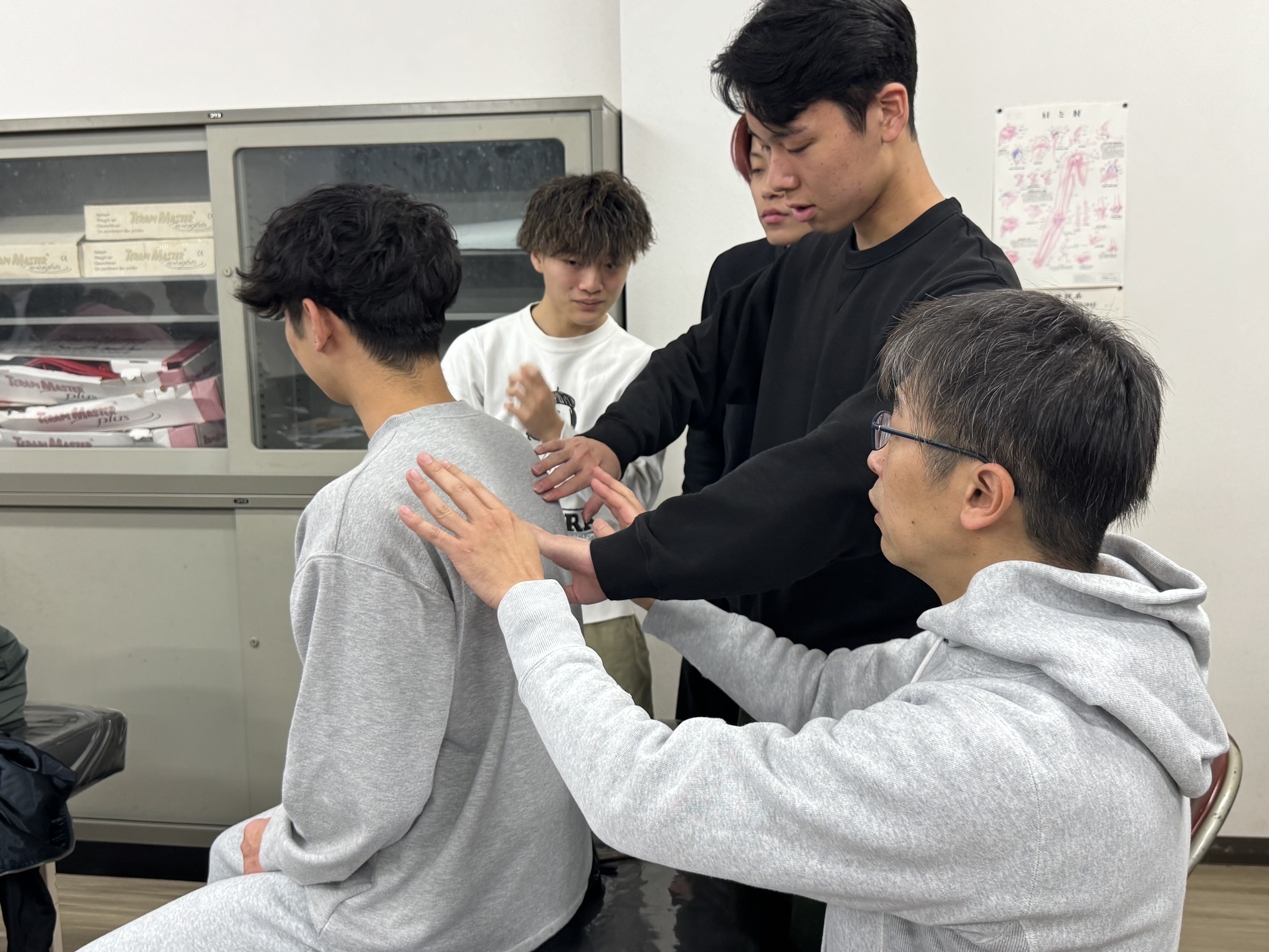 授業中は先生がすべてのペアを回りながら、一人ひとりの手の当て方や視点について細かくアドバイスしてくださり、理解を深めることができました。